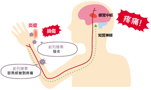 PG是由細胞膜內磷脂質中的脂肪酸所製造出來的。PG種類多,時時維持著激素平衡而工作著,猶如一個結構複雜的資訊網路家族。而解熱鎮痛劑,則是為了抑制生成PG的酵素(環氧酵素Cyclooxygenase)的活動,使其停止製造PG的藥物。